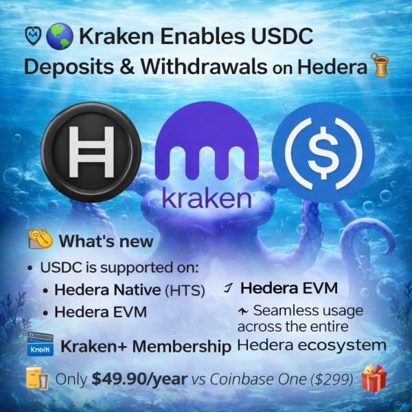 Kraken now supports USDC on Hedera, enabling faster and more efficient stablecoin transfers.